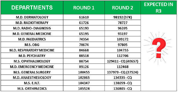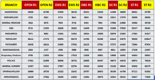 This significant downward movement in cutoffs creates strong admission prospects not only in Round 2 but also in the Mop-Up and Stray Vacancy rounds. Candidates with higher ranks or flexible branch preferences can greatly benefit from these trends, making these branches a strategic and realistic choice for securing a PG medical seat in the ongoing MCC counselling process.