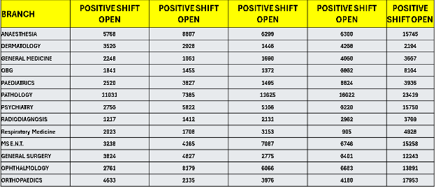 Lastly, Pathology, Psychiatry, Anaesthesia, and Respiratory Medicine fall under the lower-demand PG branches, as reflected by their comparatively higher closing ranks. These specialties have shown substantial rank relaxation, particularly across reserved categories, indicating increased seat availability.