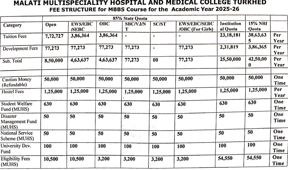 Malati Multispecialty Hospital and Medical College MBBS Fees 2025-26